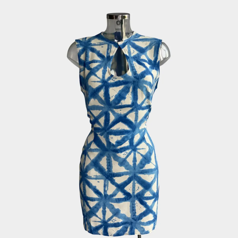 Mini dress, unique, figure-hugging, exudes feminine glamour