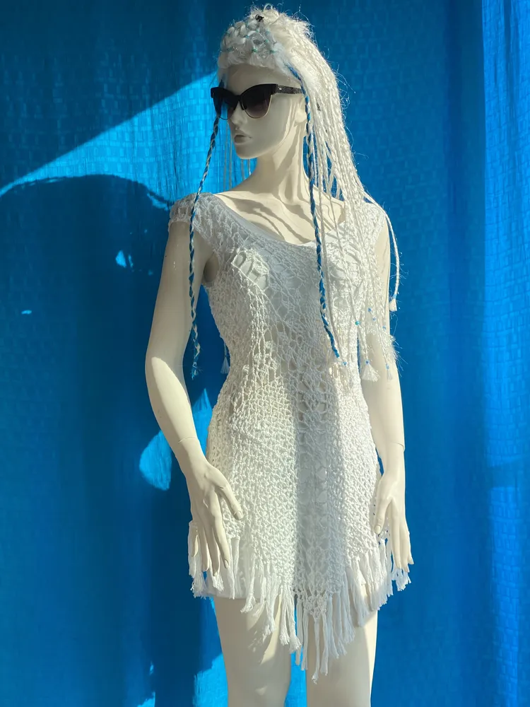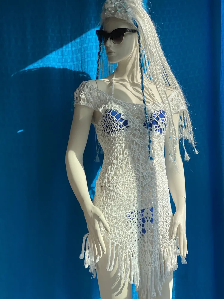 Tunic/mini dress, one-of-a-kind, romantic crochet dress, swimwear