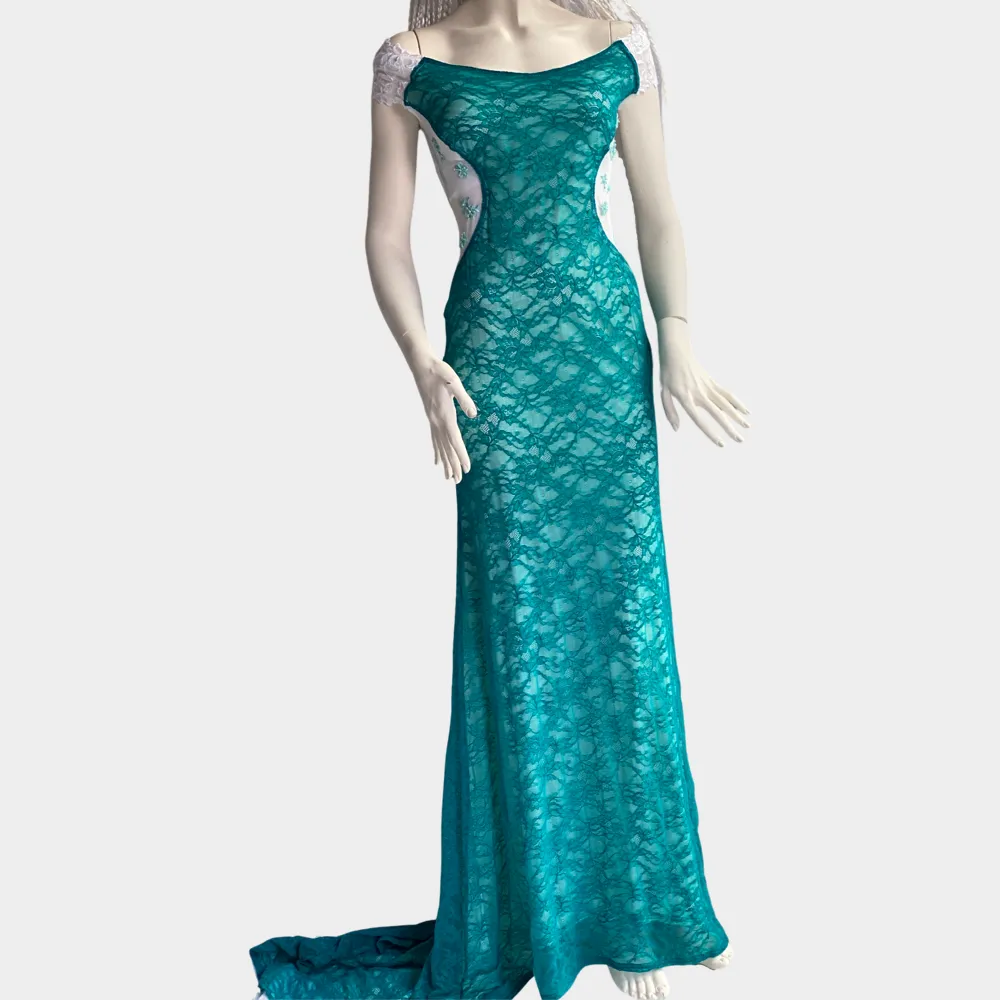 Abendkleid, Einzelstück, mit Spitze, Figurbetont, macht schöne Figur, Luxuriös mit Schleppe, Eingenkreation