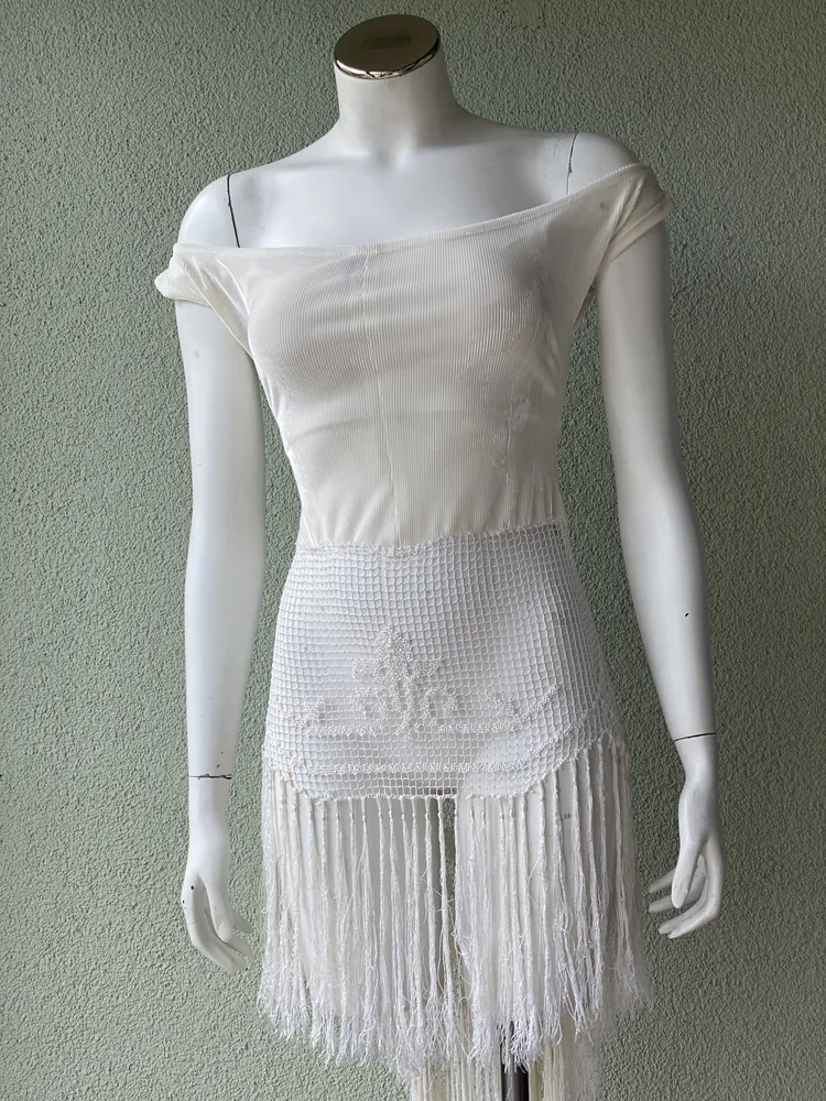 Tunika/Minikleid, Handarbeit kombi. Stoff und gehäkelte Spitze, Makramee, Einzelstück, Boho-Look
