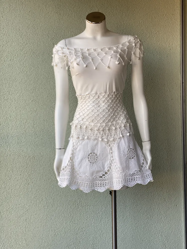 Tunika/Minikleid, Unikat, Handarbeit kombi. Stoff und gehäkelte Spitze, Einzelstück