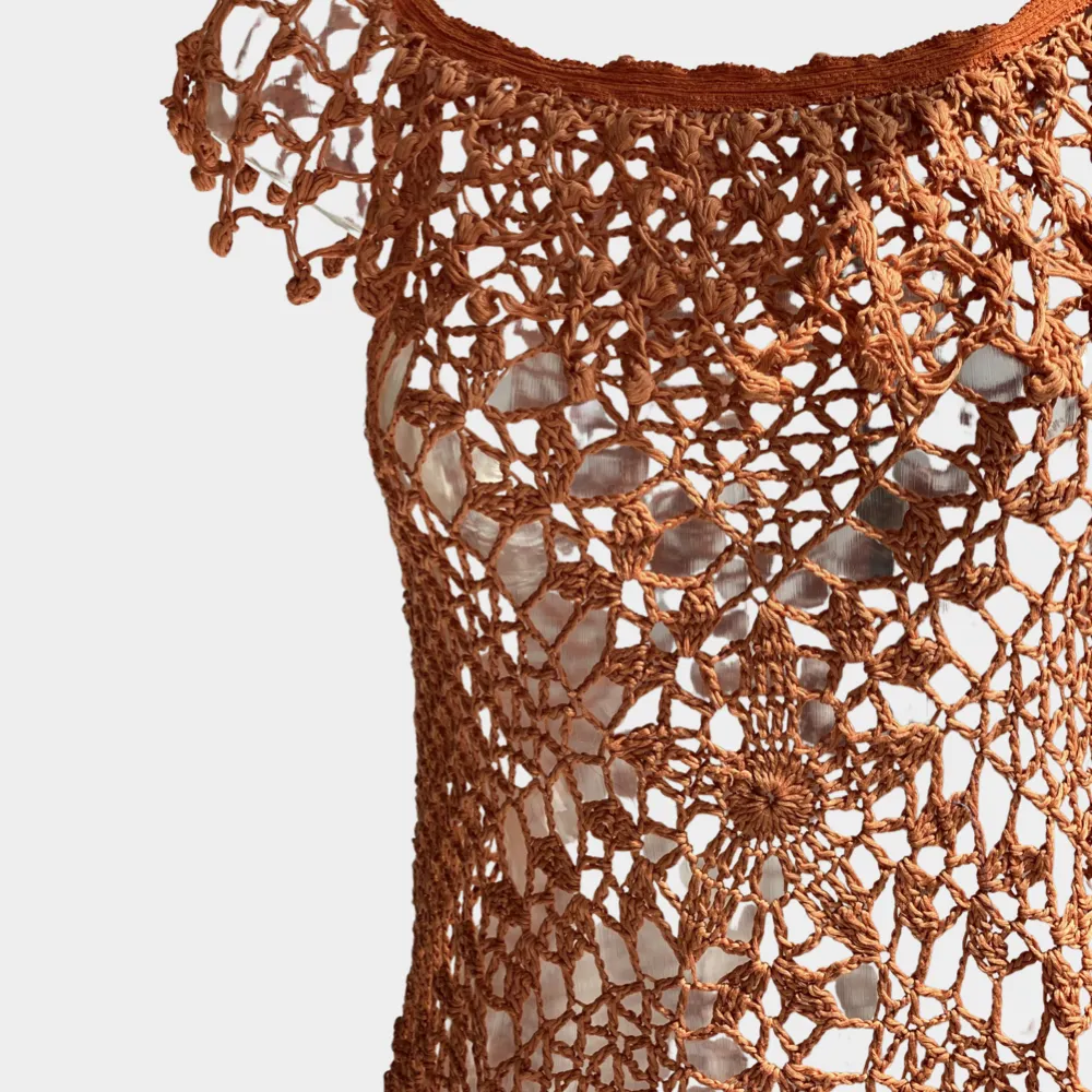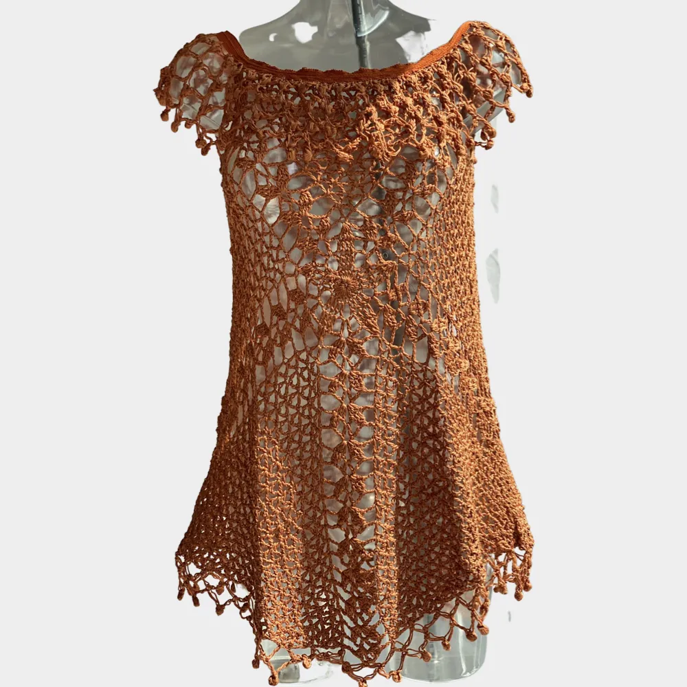 Tunika, gehäkelt, Carmen Ausschnit, Vintage Look