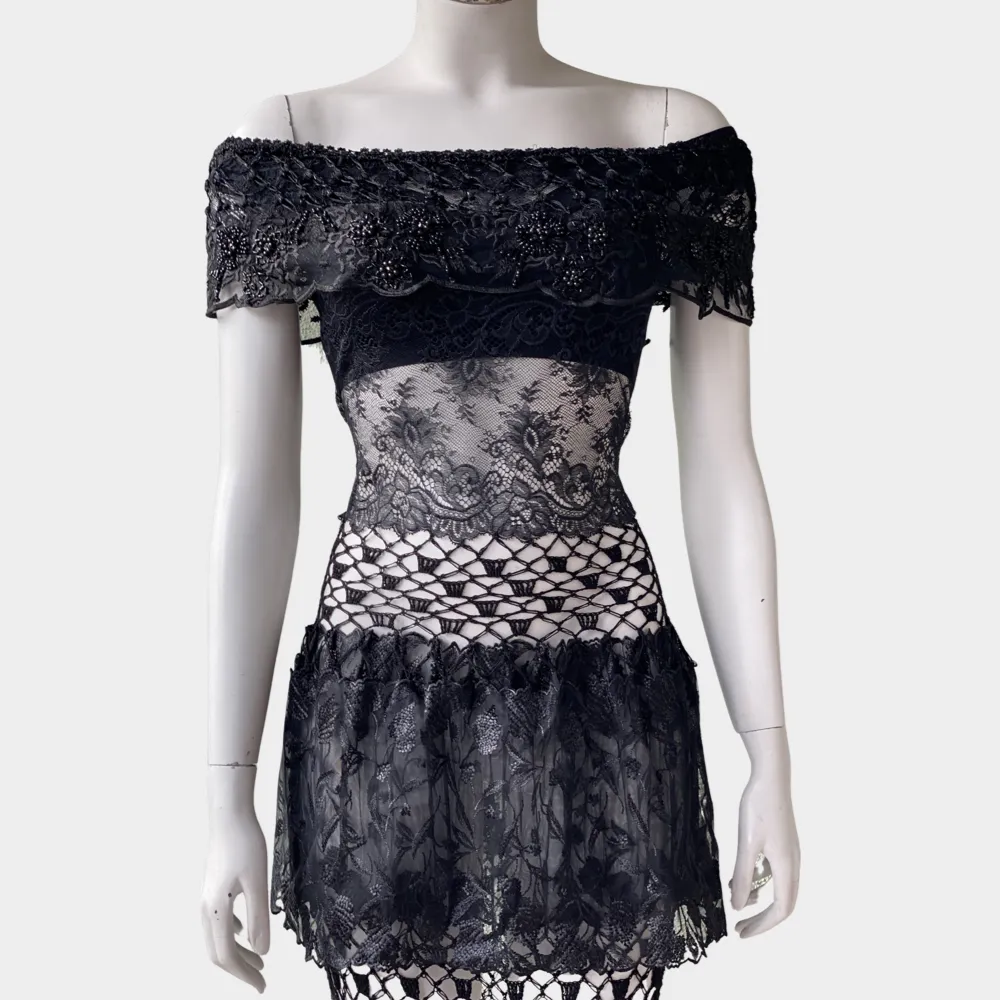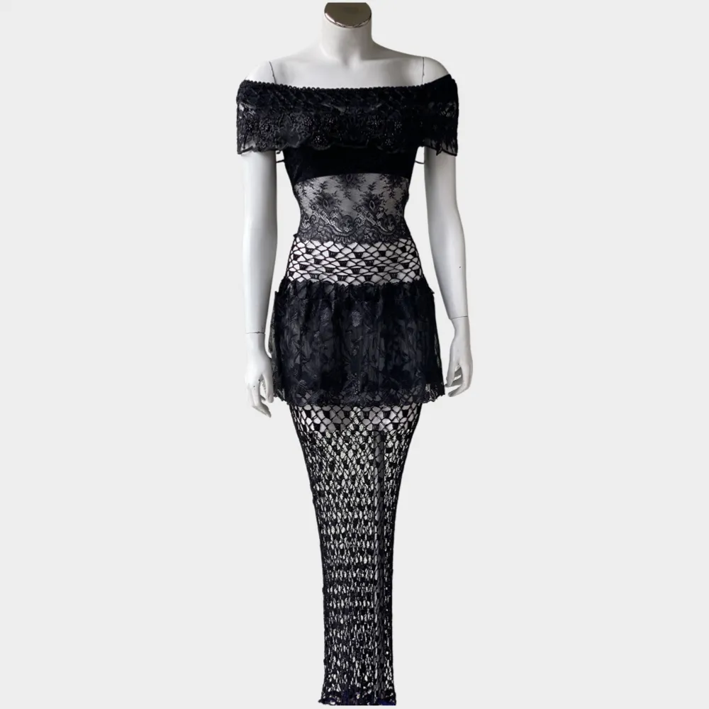 This dreamlike dress enchants with high-quality crocheted lace, unique piece, seductive