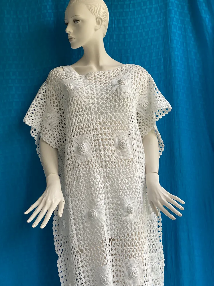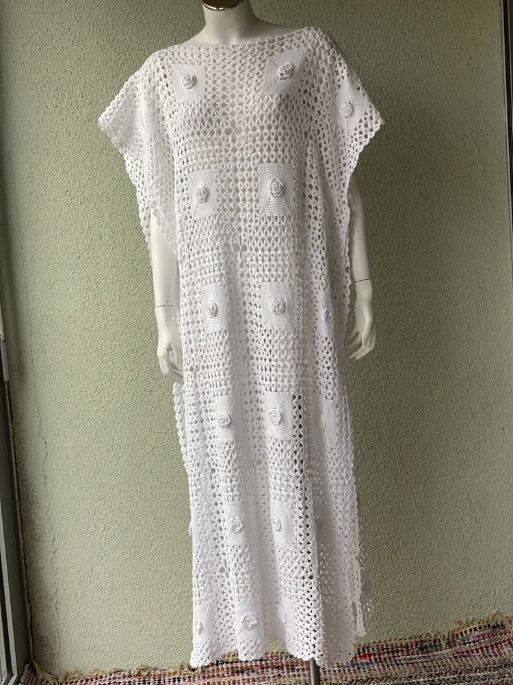 Tunic/maxi dress, unique, dress for beach wedding, swimwear, boho look, handmade, crocheted