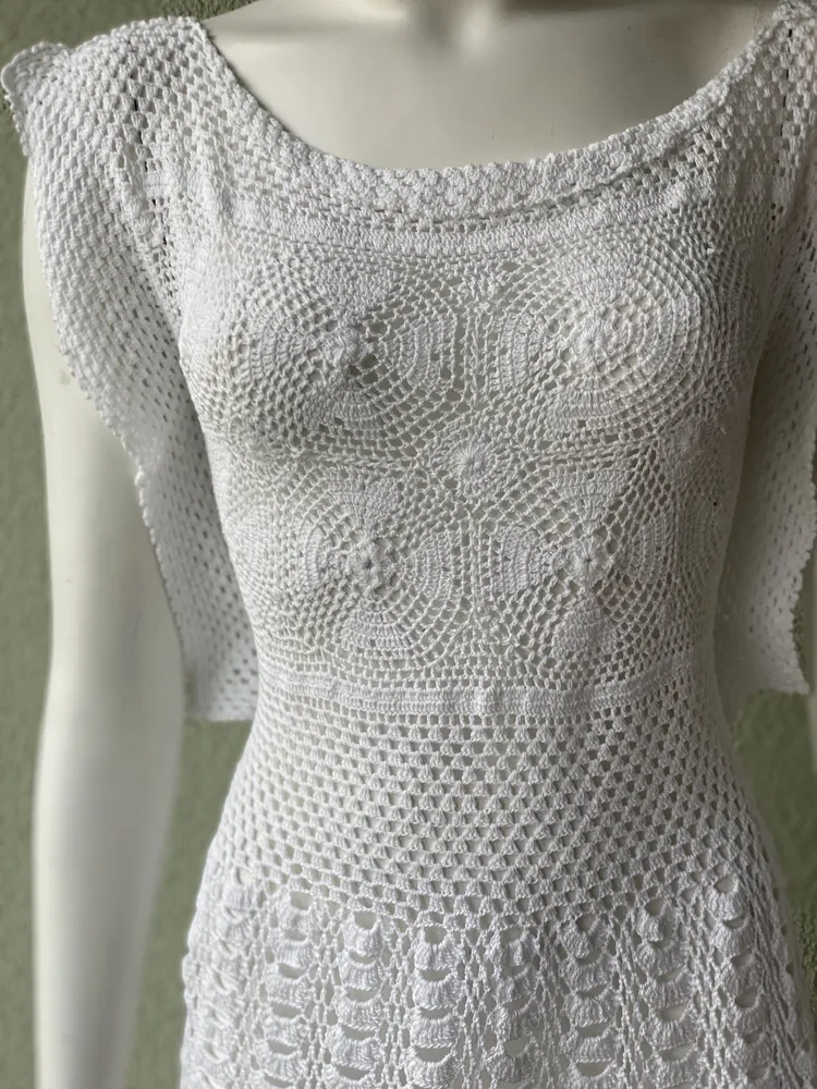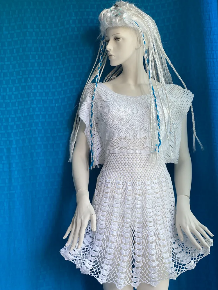 Minikleid, Einzelstück, Handarbeit, gehäkelt, Leicht ideal für Strandhochzeit, Ein besonderes Kleidungsstück in deinem Kleiderschrank