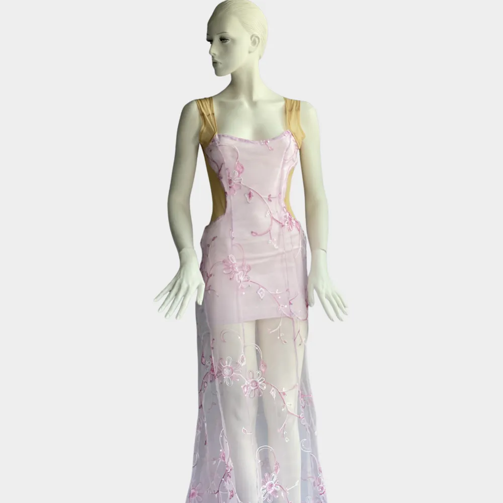 Evening dress, seductive, makes a beautiful figure, transparent, luxurious, with train