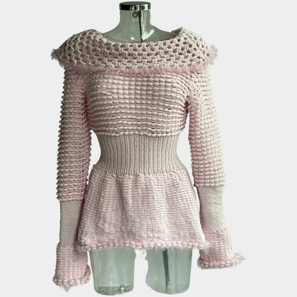 Gestrickte Tunika,mit breites Tailenband, warm, Unikat