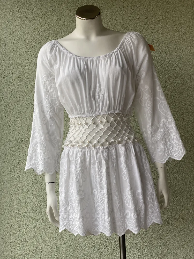 Minikleid, Tunika, Einzelstück, genäht, bestickt, perlen und gehäkelt. In diesem wunderschönen Kleid werden Sue garantiert im Mitelpunkt stehen.