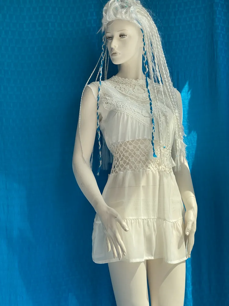 Tunika, Minikleid, Sommerkleid, Handarbeit kombiniert mit Spitze, Einzelstück