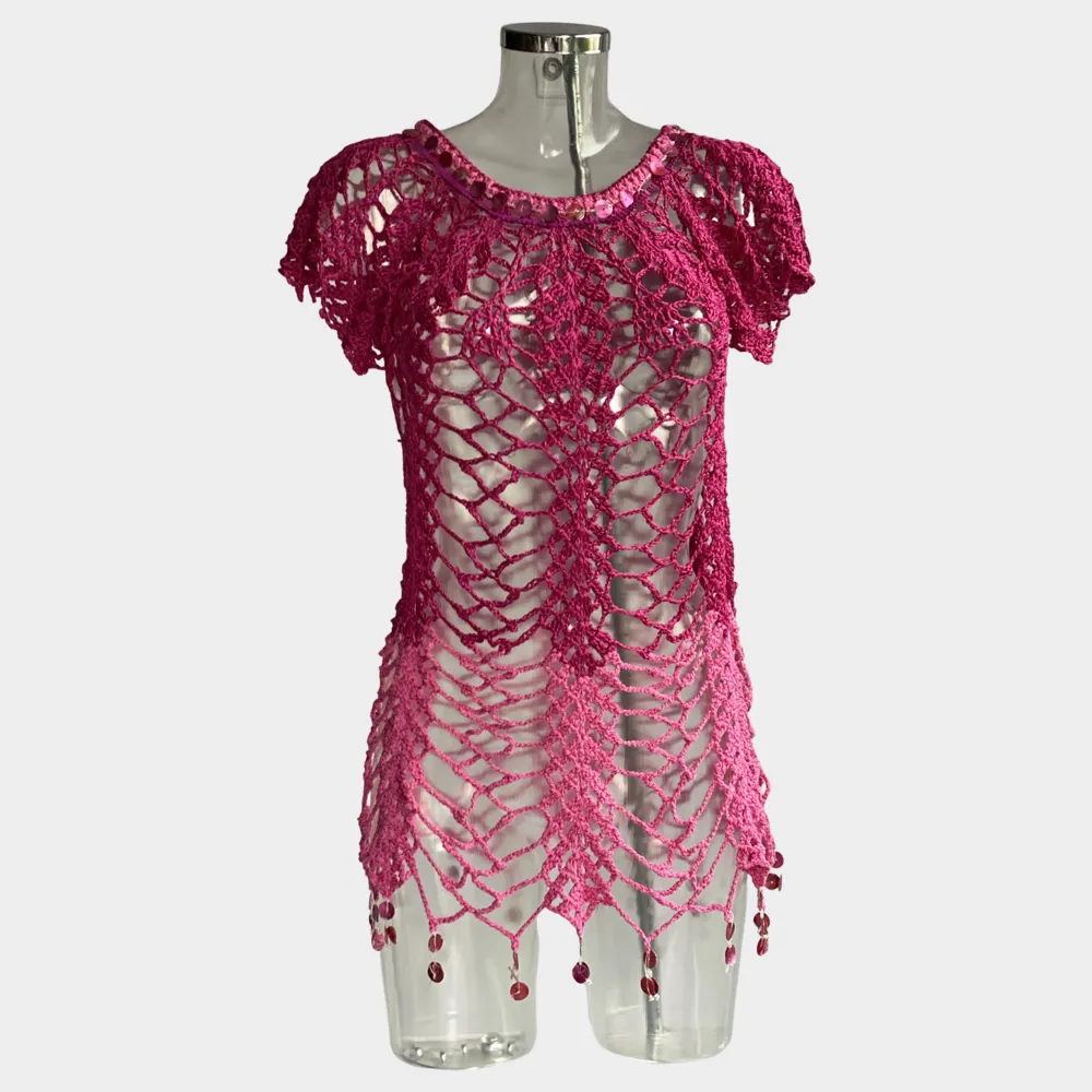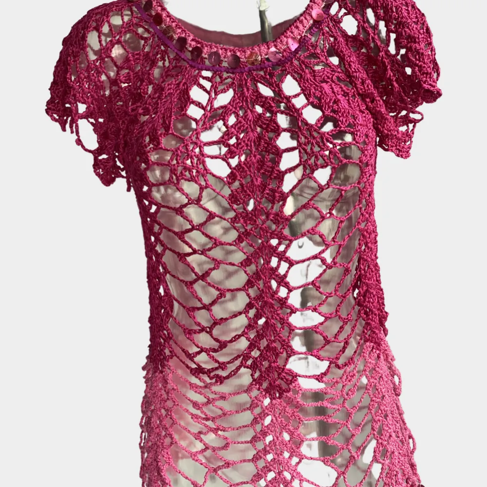 Gehäkelte Tunika, verziert mit pailetten, ein zauberhafter Look, Unikat