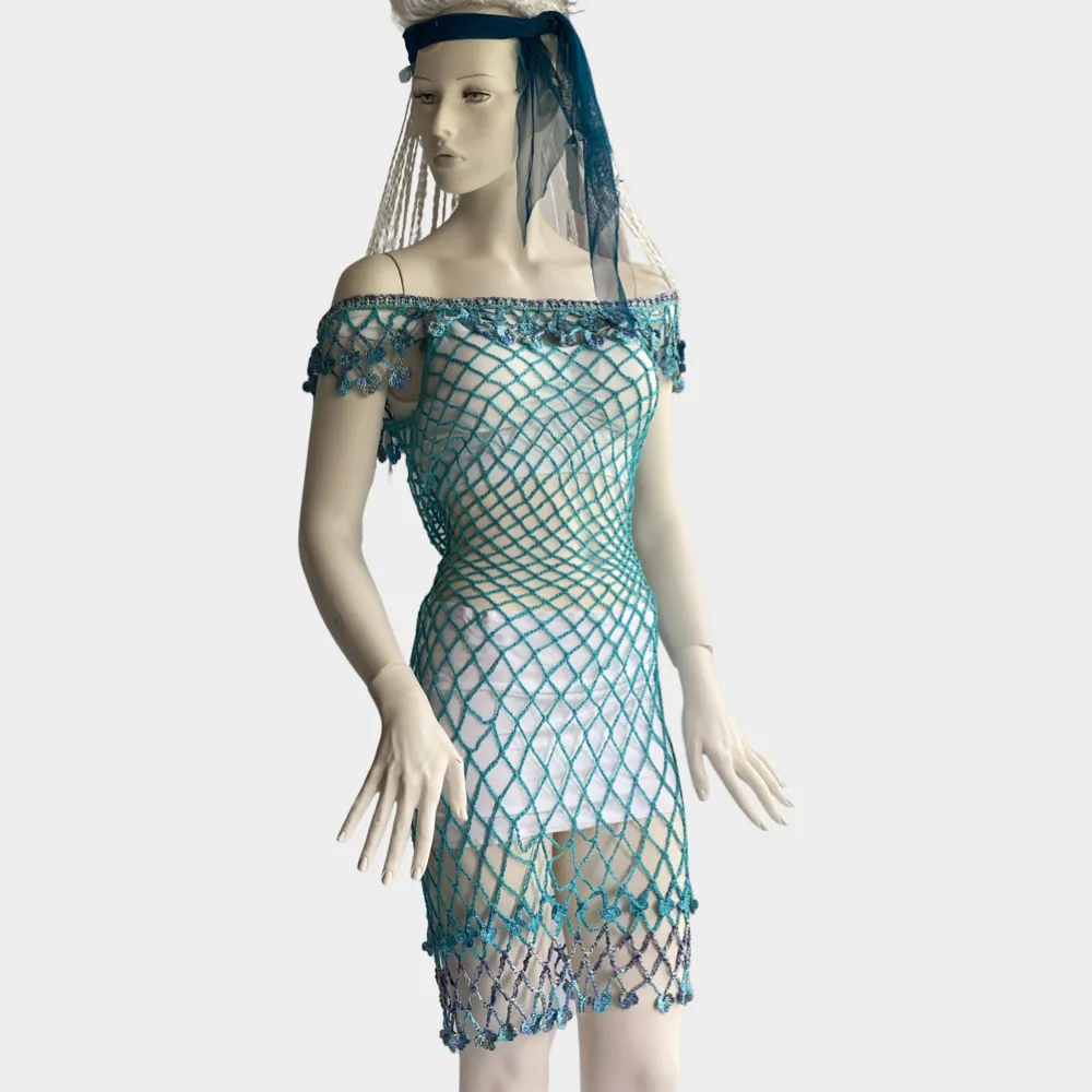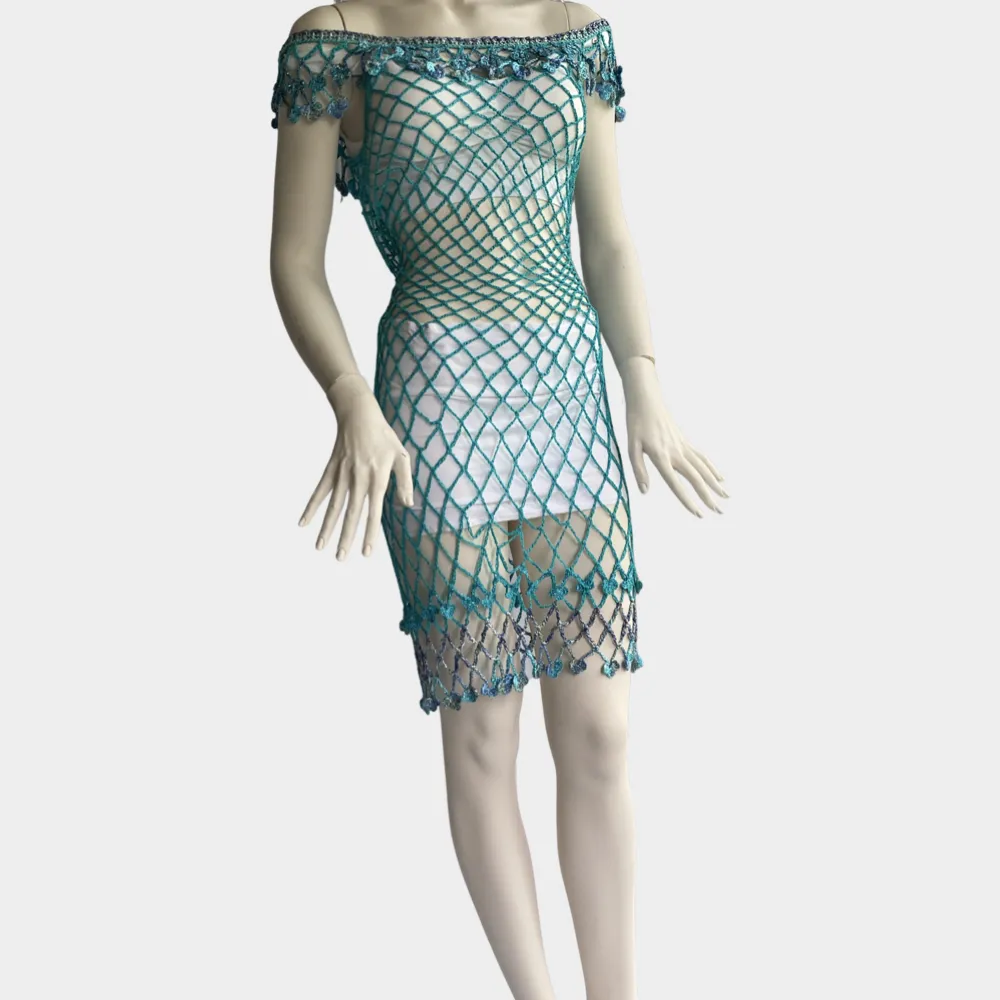 Večernja koktel haljina, unikat, heklana, pogodna i kao kupaći kostim, vlastita kreacija,