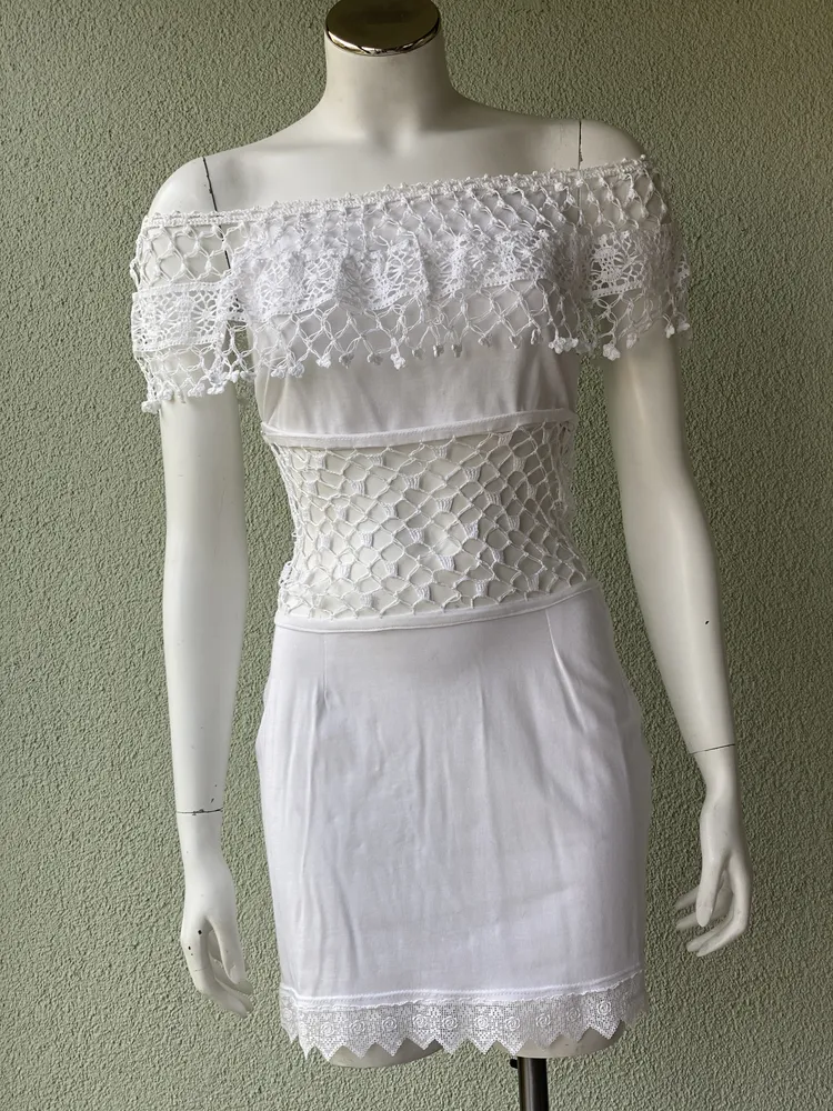 Tunika/Minikleid, Einzelstück, Verführerisch, Romantische Strandhochzeit, Handgemacht aus gehäkelter Spitze und elastischem Stoff