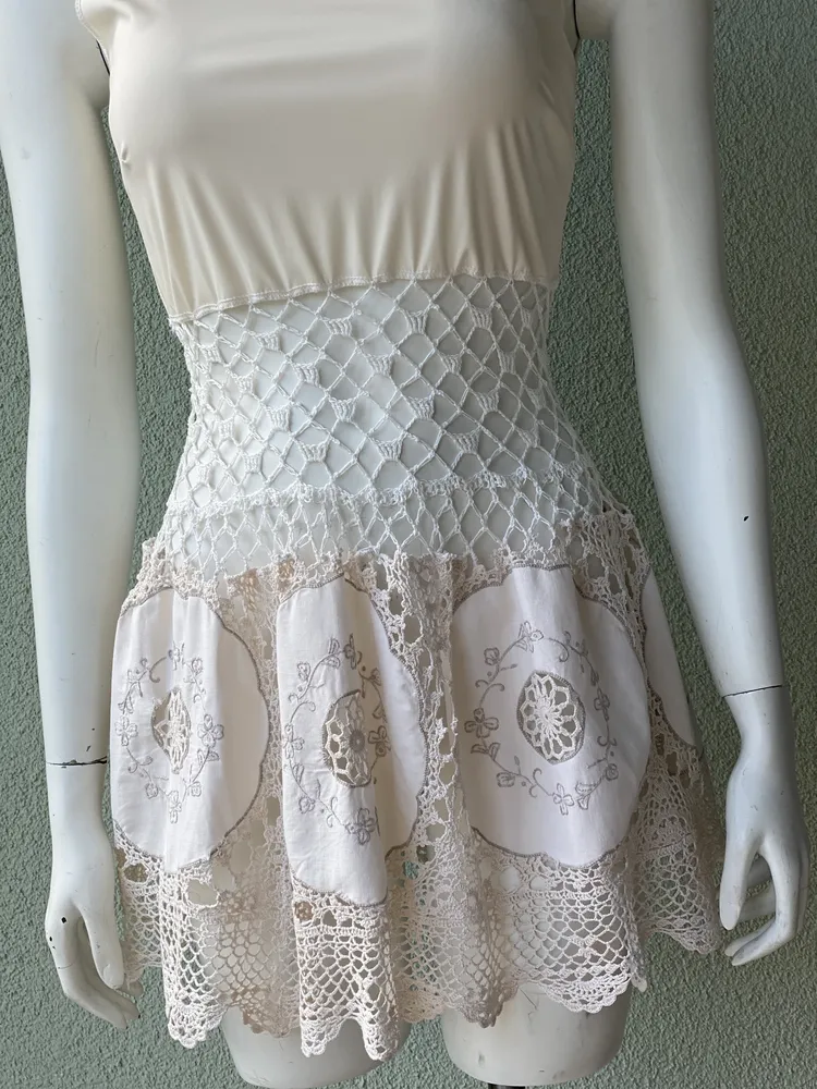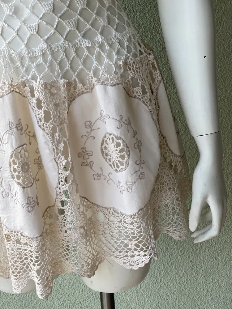 Tunika/mini haljina, unikat, kombinacija ručni rad. Štof i heklana čipka, boho izgled