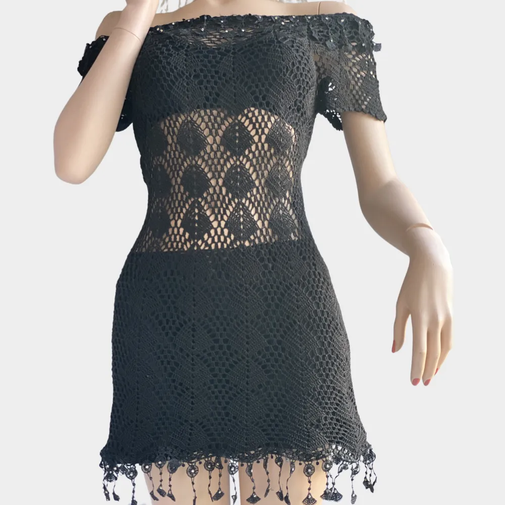 Ova heklana haljina je prozirna, savršeno unosi ženske obline u scenu, jedinstven komad