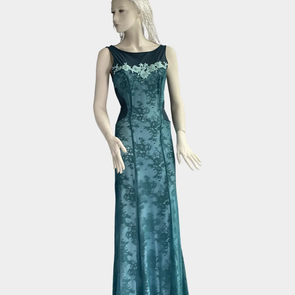 Abendkleid, Einzelstück mit Spitze, Figurbetont, macht schöne FigurEigenkrestion, Luxuriös mit Schleppe